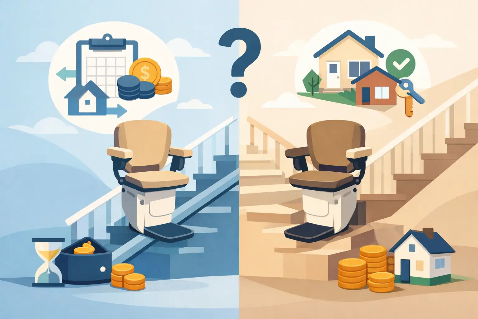 Miete oder Kauf Treppenlift - welche Lösung passt finanziell und praktisch? Kosten, Dauer, Zuschüsse und typische Entscheidungshilfen im Überblick.